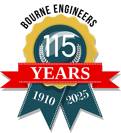 Published September 4, 2025 at 400 × 439 in Bourne Engineers 115 Years (400px) Bourne Engineering: Celebrating over 100 years of business. Rosette displaying “Bourne Engineering: Celebrating over 100 years of business.””